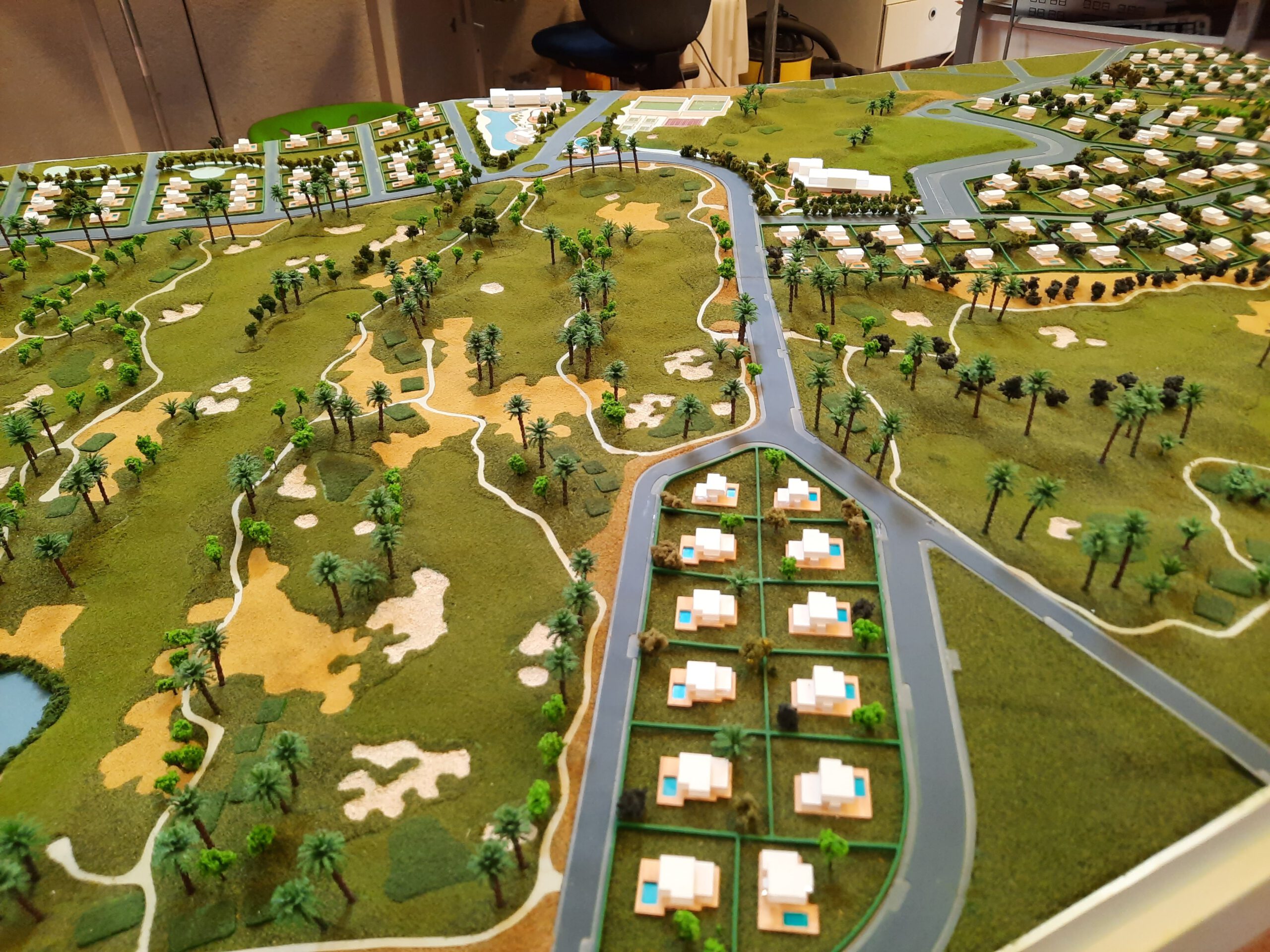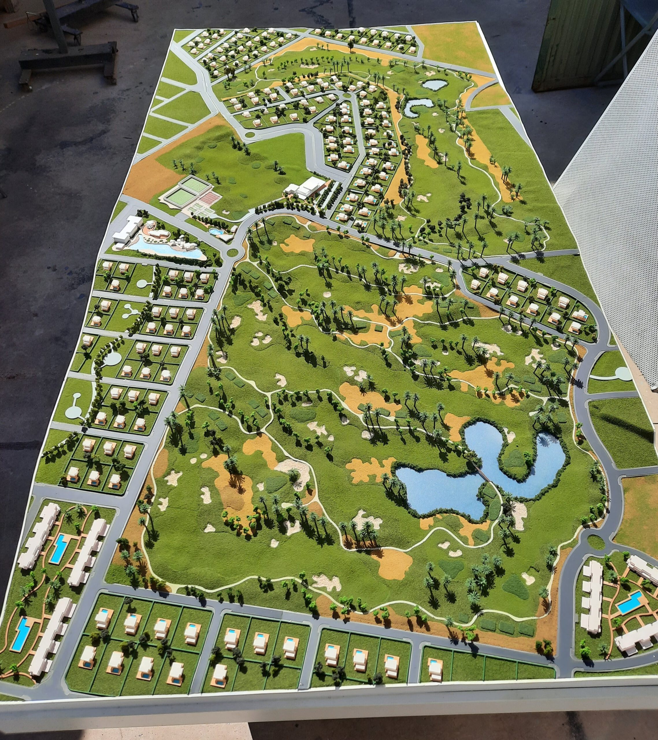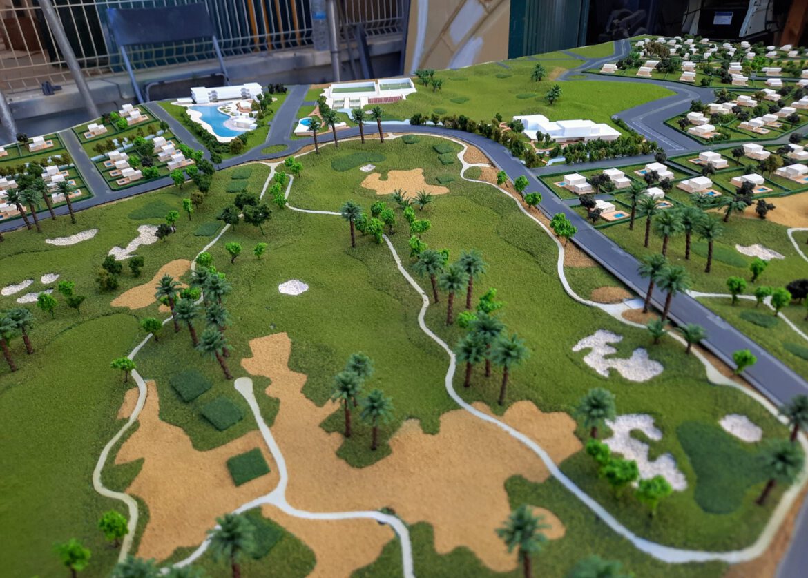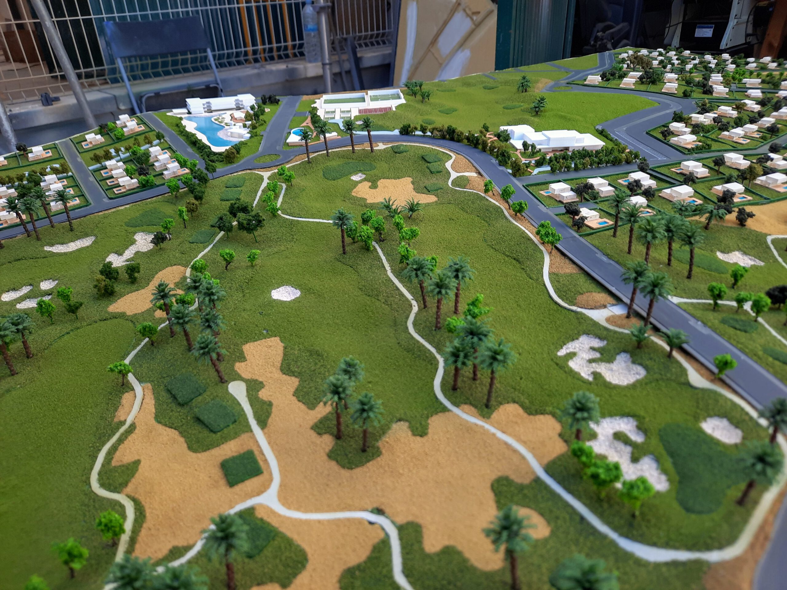 Campo de Golf de 18 hoyos en Vistabella a escala 1:1000. Distribución del campo y parcelas con tipologías de viviendas.